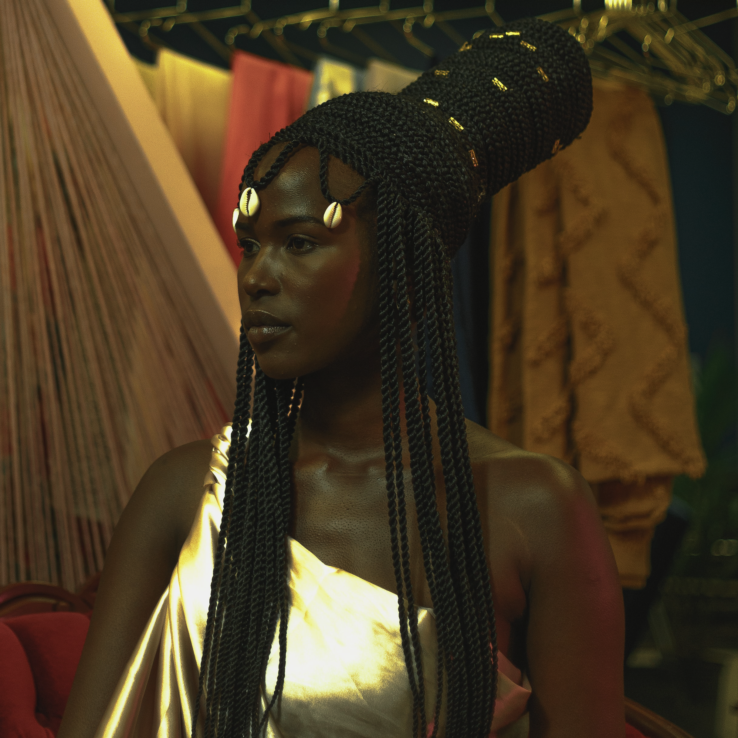 Amara’s thick hair hangs down her back in huge plaits, a stark difference from the elaborate threaded hairstyles among women of her status.